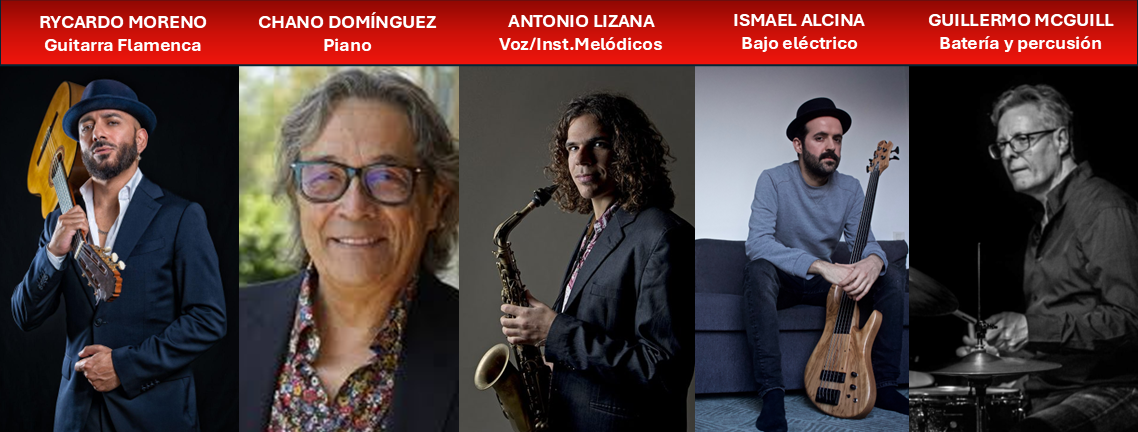 Completa el equipo Guillermo McGill, baterista, percusionista, compositor y productor uruguayo afincado en España, considerado uno de los músicos más relevantes en la fusión entre jazz y flamenco. Su amplia trayectoria junto a grandes nombres de ambos géneros lo convierte en una presencia de especial valor dentro de esta primera edición.