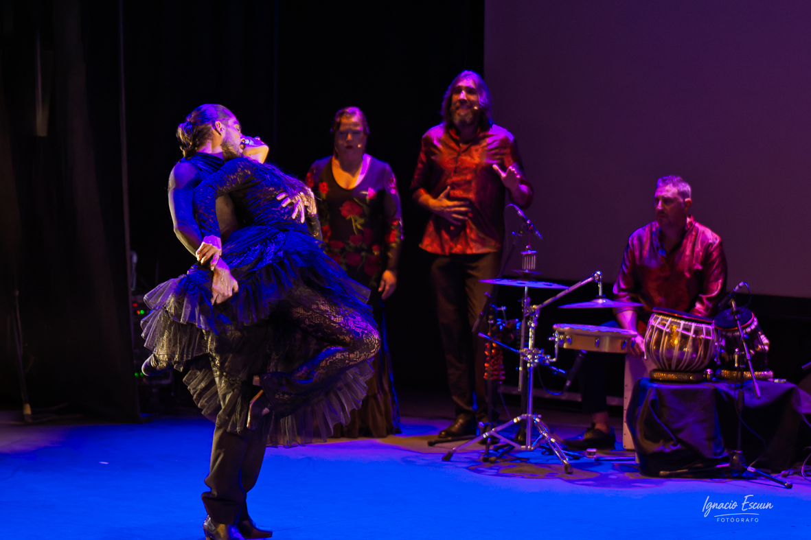 Con una cuidada estética —el escenario envuelto en rosas y espinas, proyecciones al unísono y música original—, Macarena Ramírez estuvo acompañada por un elenco compacto: Iván Orellana al baile; Jesús Flores y Ana Gómez al cante; Samuel Cortés al violín; Manuel Pájaro a la percusión; y Javier Ibáñez a la guitarra y dirección musical.