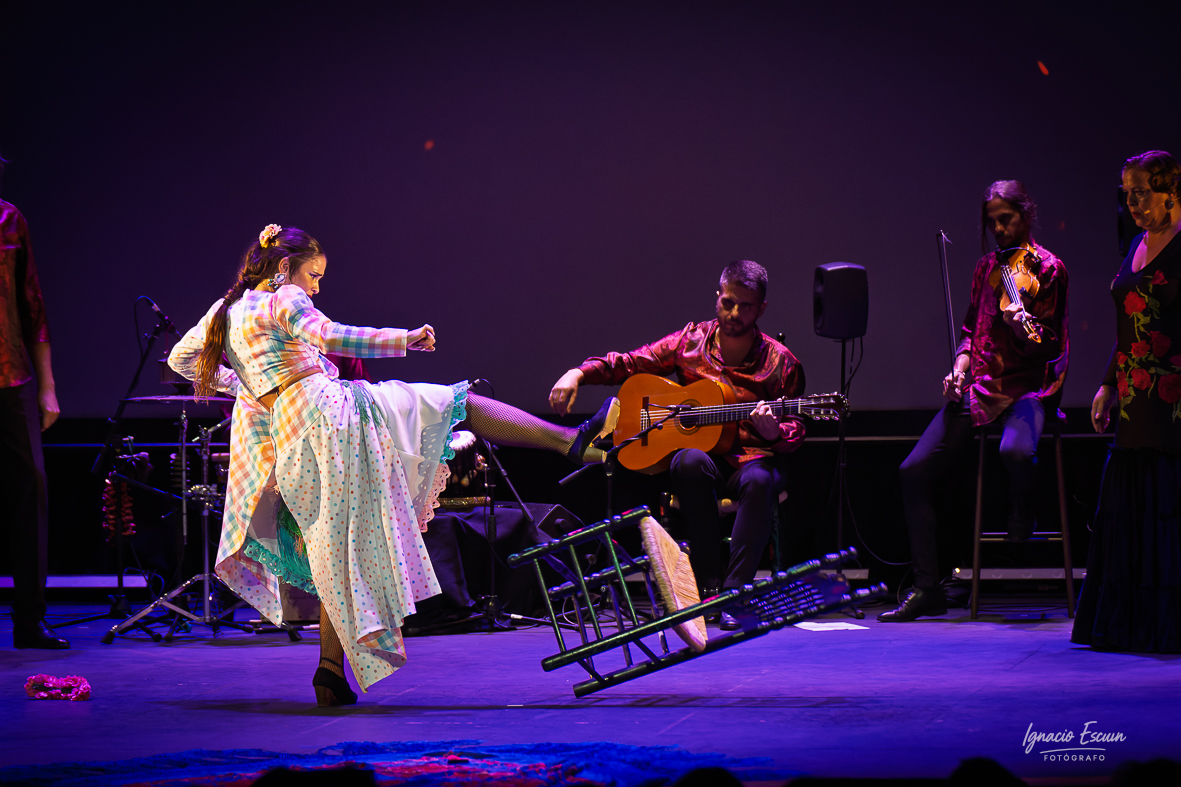 En la segunda parte, titulada “El dolor que arde”, Ramírez desbordó fuerza en un zapateado espectacular y unos tangos centrados en una silla cubierta de rosas y espinas, que finalmente patea con rabia, liberando el alma.